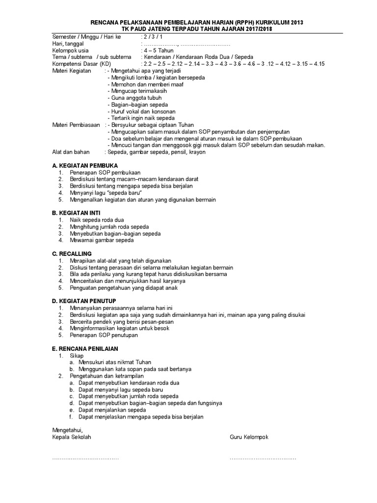 Rpph Tk A Smt2 Minggu 03 Kendaraan Darat 1